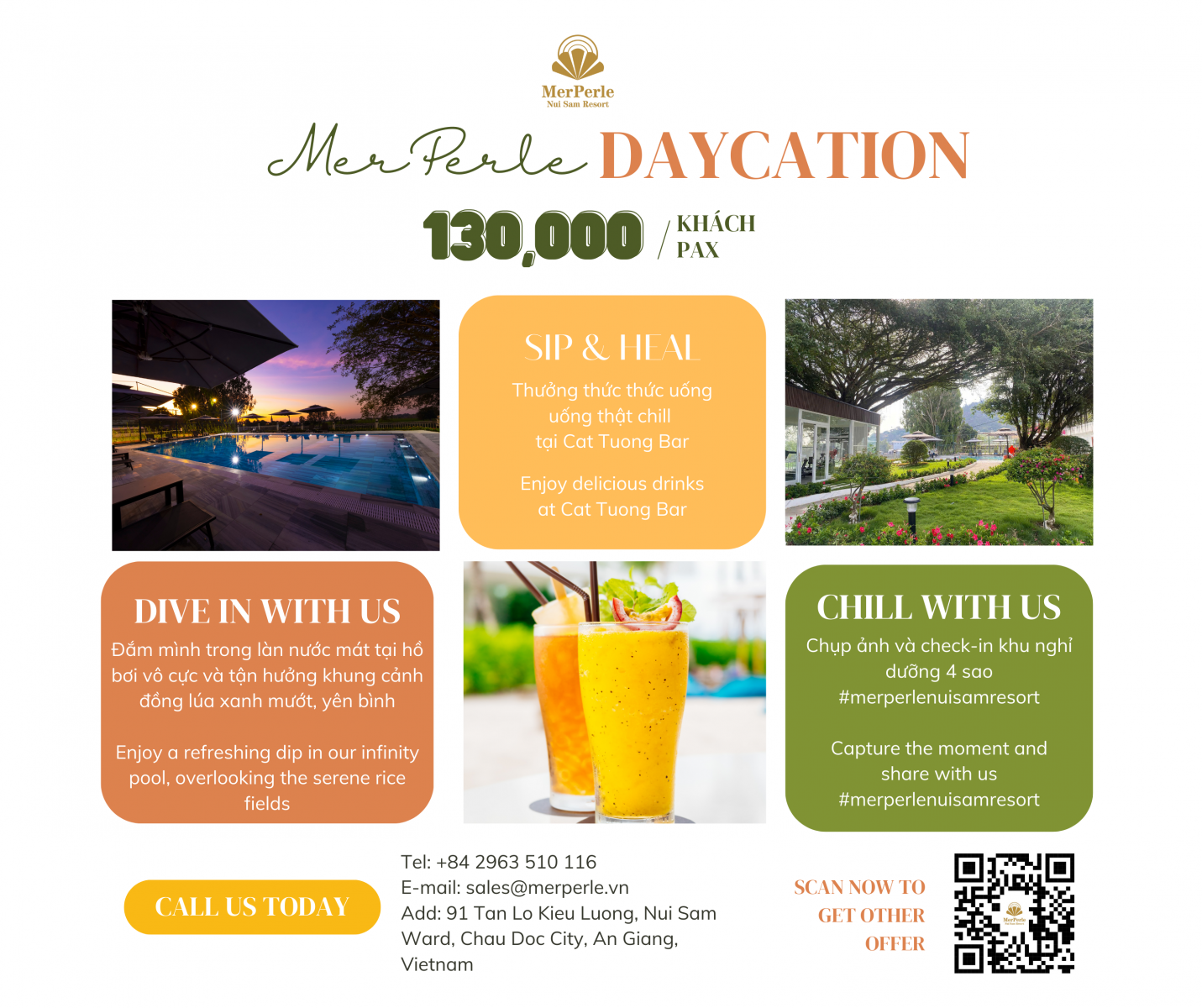Vui chơi trong ngày & đón hè với chuyến vui chơi trong ngày cực chill tại Khu nghỉ dưỡng MerPerle Nui Sam chỉ với 130,000/người lớn & 70,000/trẻ em dưới 1.2m và được: